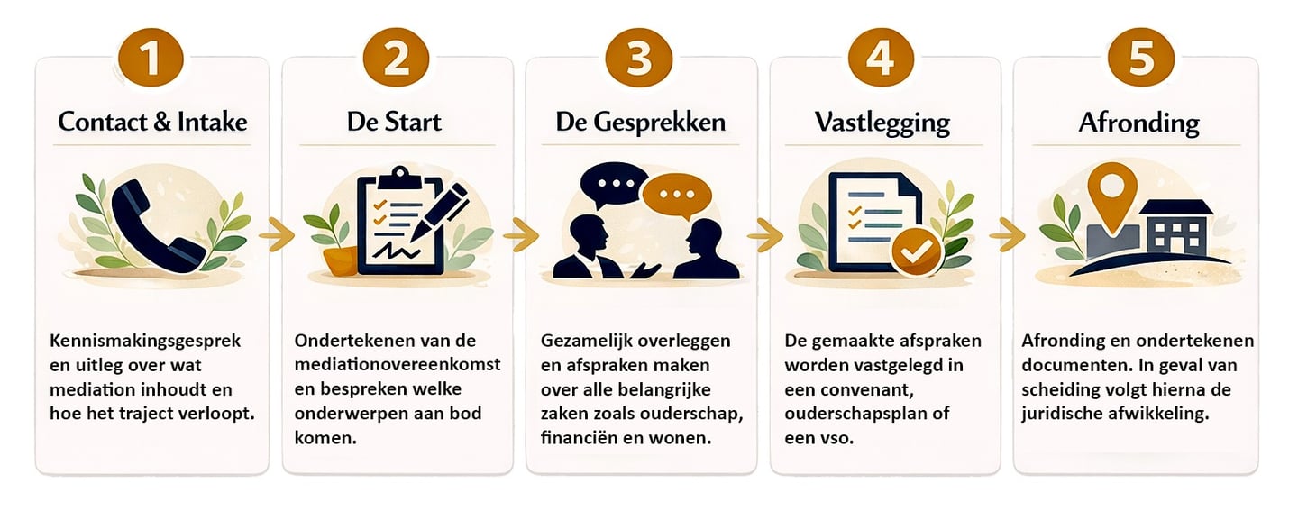 - Kijken jullie samen of mediation passend is en ik voor jullie de juiste persoon hiervoor ben.